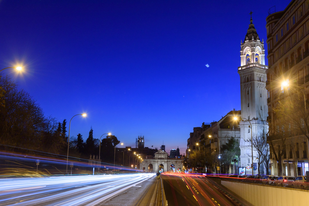 En la teoría, se ve muy fácil, pero en la práctica, en una calle muy transitada, como puede ser la Gran Vía de Madrid, puede no ser tan fácil lograrlo vaciar toda la calle al mismo tiempo. ¿Cómo lo haremos? Haciendo varias fotografías de larga exposición sin mover la cámara y luego, en postproducción, combinar todas esas fotos seleccionando las zonas “limpias” de cada toma para formar una imagen final con toda la calle despejada de coches y de gente.
